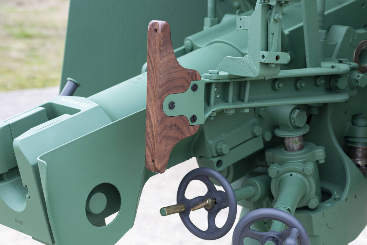 The carriage underwent extensive restoration to eliminate decay, and we applied high-quality, durable paint to guarantee its longevity against wear and tear. Likewise, we meticulously refurbished the barrel and muzzle brake to maintain both performance and historical accuracy.
