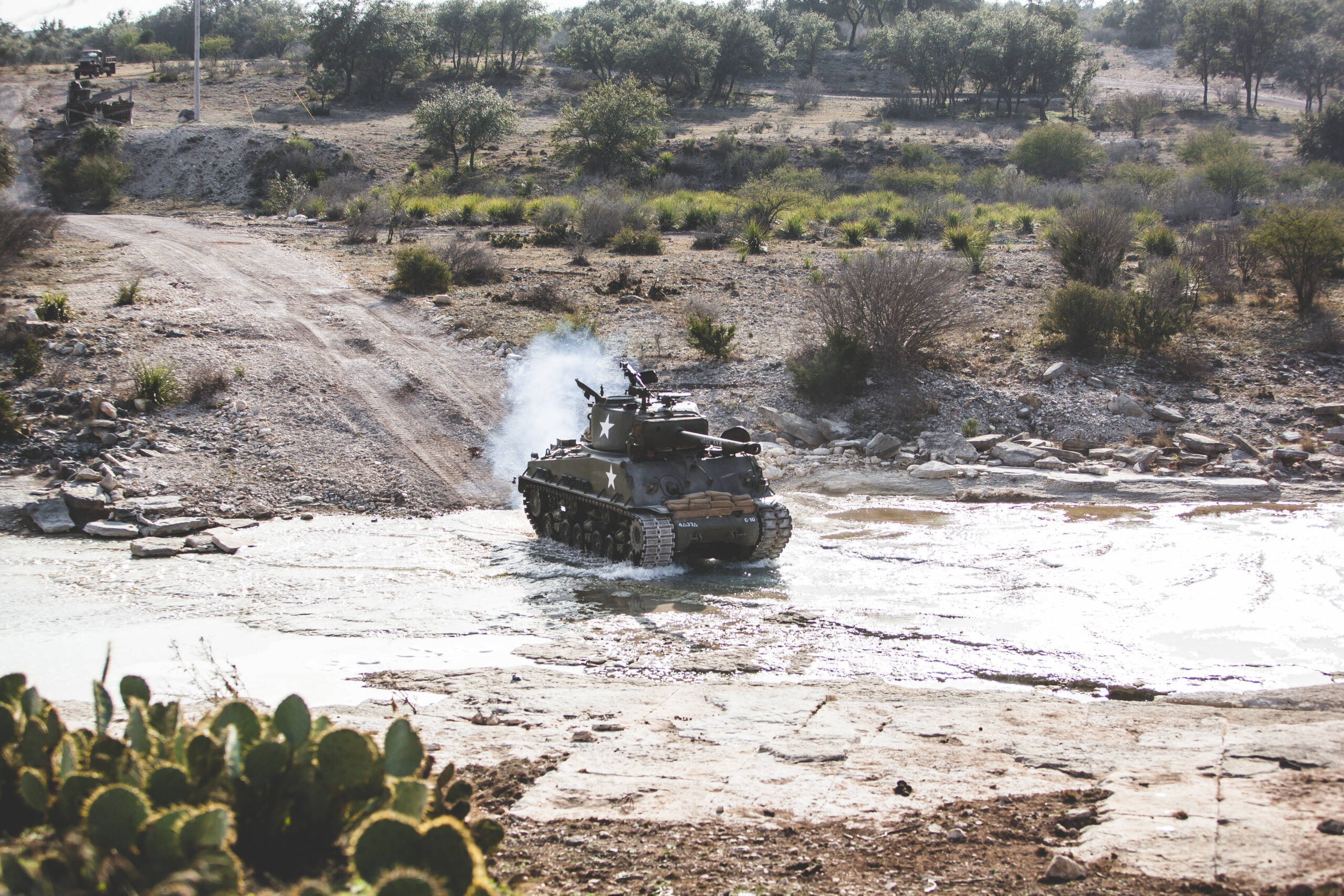 This tank served as a movie prop in both “Saving Private Ryan” and “Band of Brothers.” Originally a post-war Polish T34, it was expertly transformed into a functional and serviceable armored vehicle. The refurbishment process ensured that it maintained the scaled and accurate features that reflect its cinematic lineage, allowing it to retain its significance as a prominent piece of film history.